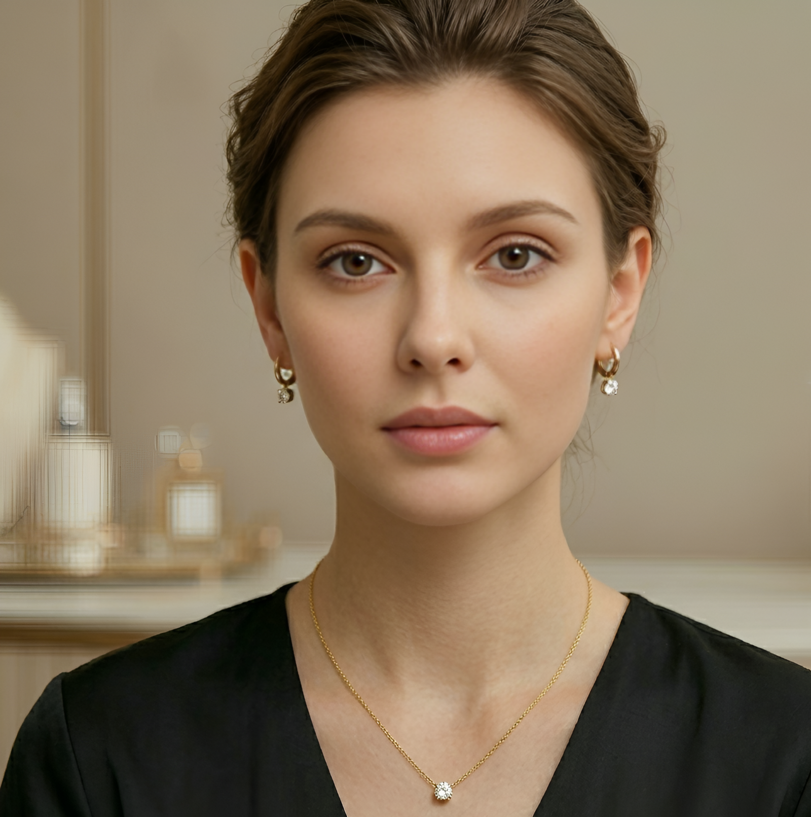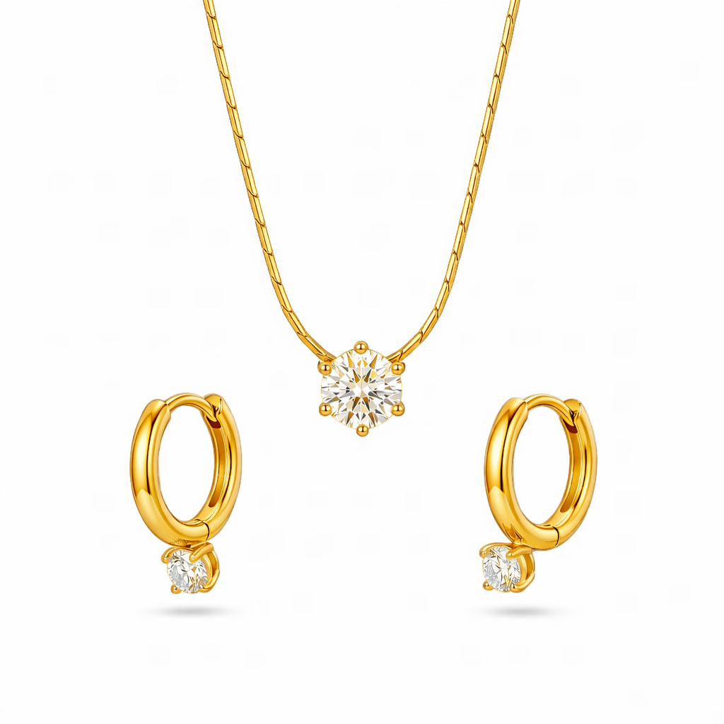The SHAHEEBA Golden Minimal Necklace & Earring Set exudes timeless beauty. Crafted from premium stainless steel, this jewelry set is designed for those who appreciate understated elegance paired with reliable craftsmanship. Adorned with flawless round-shaped white stones featuring excellent cuts, the set offers a touch of luxury that blends seamlessly with your daily style. Whether you’re heading to work or celebrating a special occasion, this minimalistic accessory ensures you make a lasting impression.