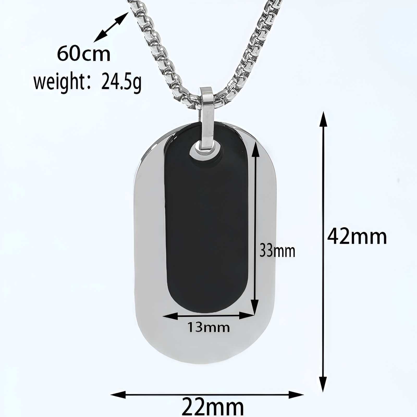 The chain is crafted from high-quality titanium steel, ensuring long-lasting performance. It features a silver plating that resists fading, rust, and moisture, providing both reliability and a timeless aesthetic. Whether you’re at the gym, office, or traveling, this chain maintains its shine effortlessly.